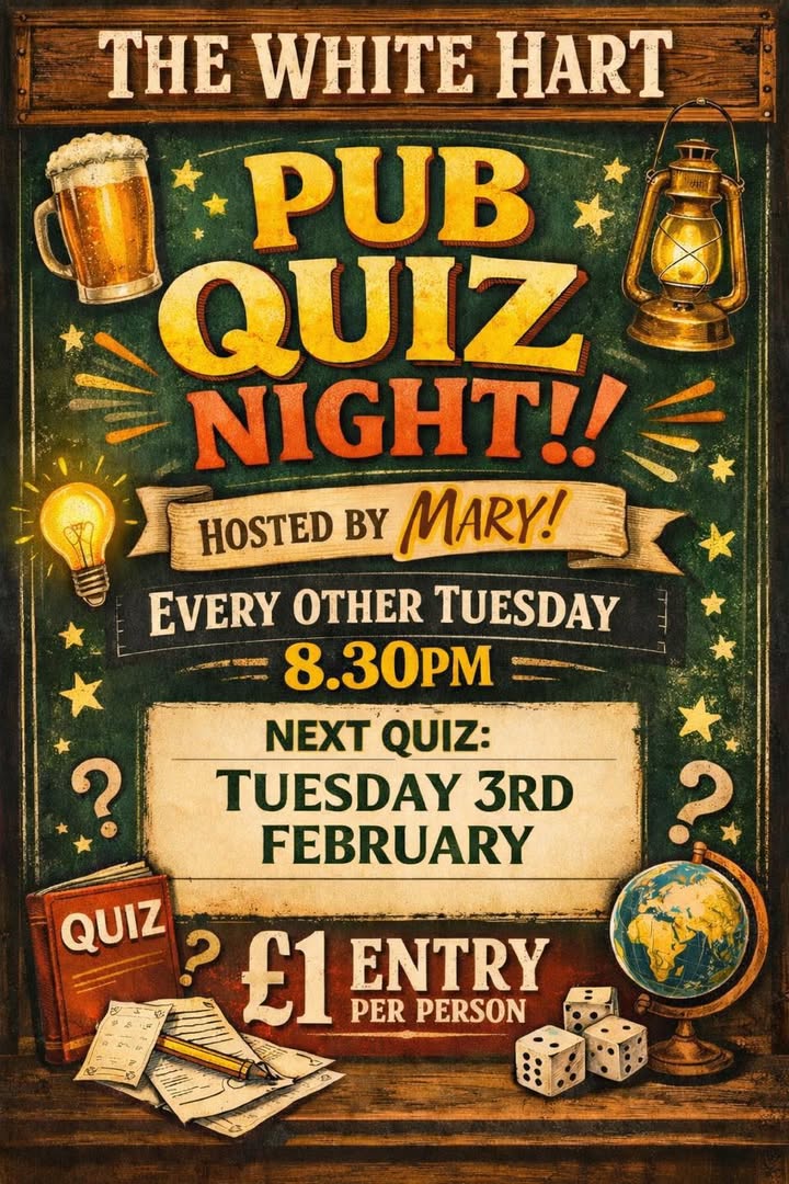 🧠🔥 QUIZ NIGHT TONIGHT! 🔥🧠 It’s quiz o’clock at The White Hart and Mary’s ready to put your brains to the test! 😄 Grab your team, grab a drink and settle in for a cracking night of questions, laughs and friendly competition. 🕣 Starts 8.30pm 💷 £1 entry per person Walk in, join in, and see if you’ve got what it takes… 👀🍻 See you here….😀 Ross and the Team The White Hart, Fernhill Heath.