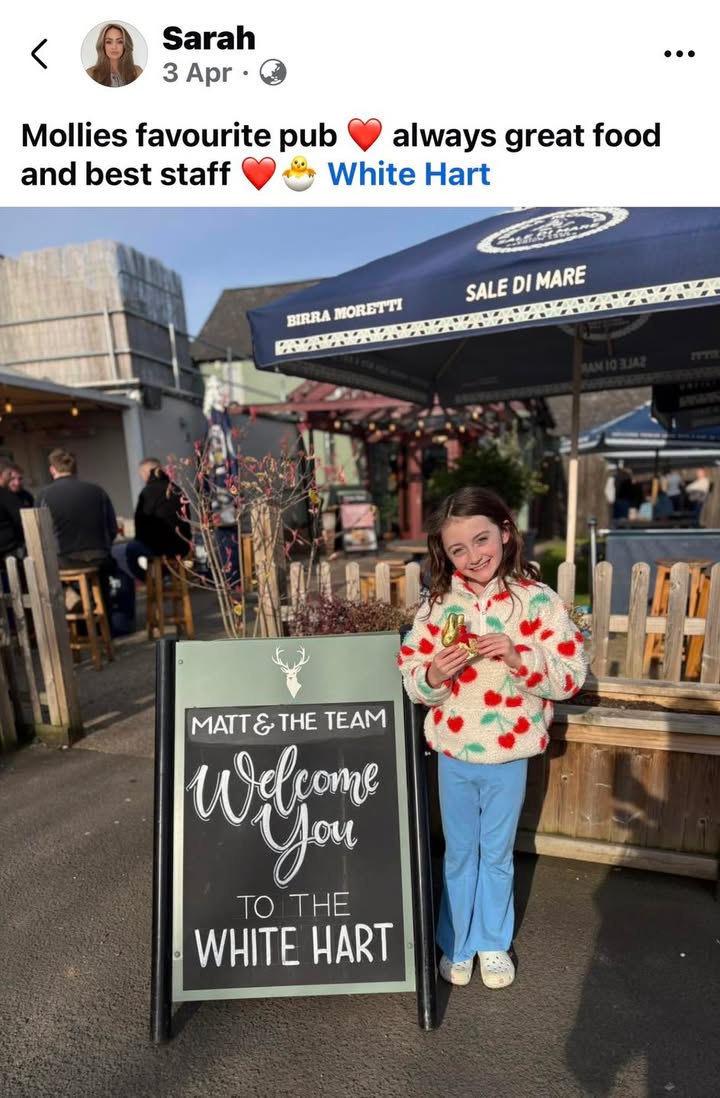Loving This Photo Of Molly with her chocolate Easter Bunny that we gave away last week! Thanks for sharing Sarah 🥰 Matt and the Team The White Hart, Fernhill Heath.